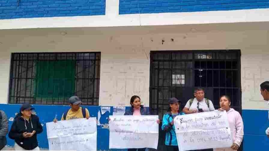 Un grupo de docentes se congregó hoy a las afueras de la Unidad de Gestión Educativa Local (UGEL) 13 para expresar su indignación y exigir el pago pendiente correspondiente al mes de diciembre. La falta de remuneración ha llevado a los maestros a realizar una protesta pacífica, solicitando la intervención urgente de la Gobernadora Rosa Vásquez.